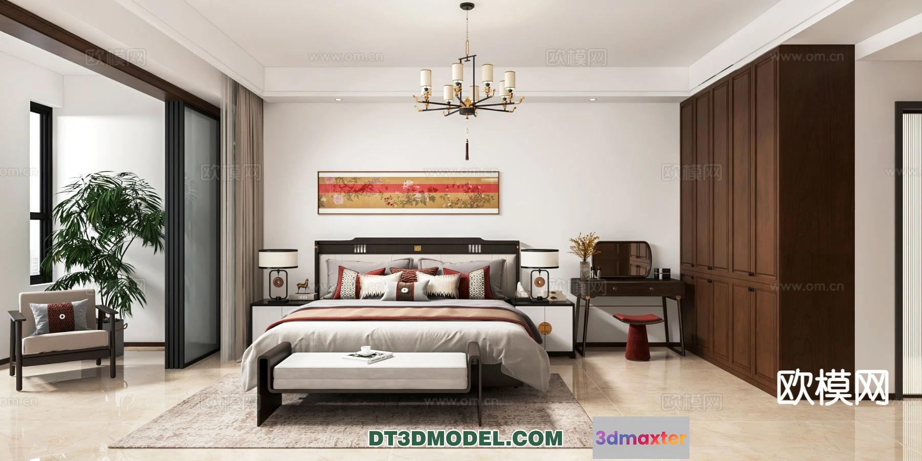 3D Models / 3D Scenes / Interior / Bedroom / Bedroom – Chinese Style – 3D Model For Interior Design – 682 3D Max