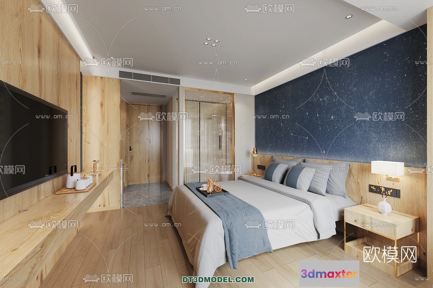 3D Models / 3D Scenes / Interior / Commercial Spaces / Bedroom For Hotel – 3D Scene – Interior Design – 005 3D Max