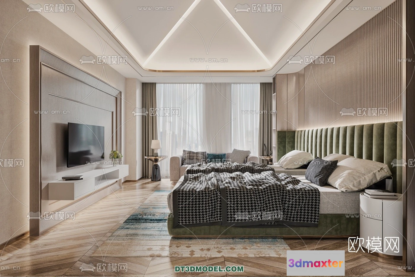 3D Models / 3D Scenes / Interior / Commercial Spaces / Bedroom For Hotel – 3D Scene – Interior Design – 006 3D Max