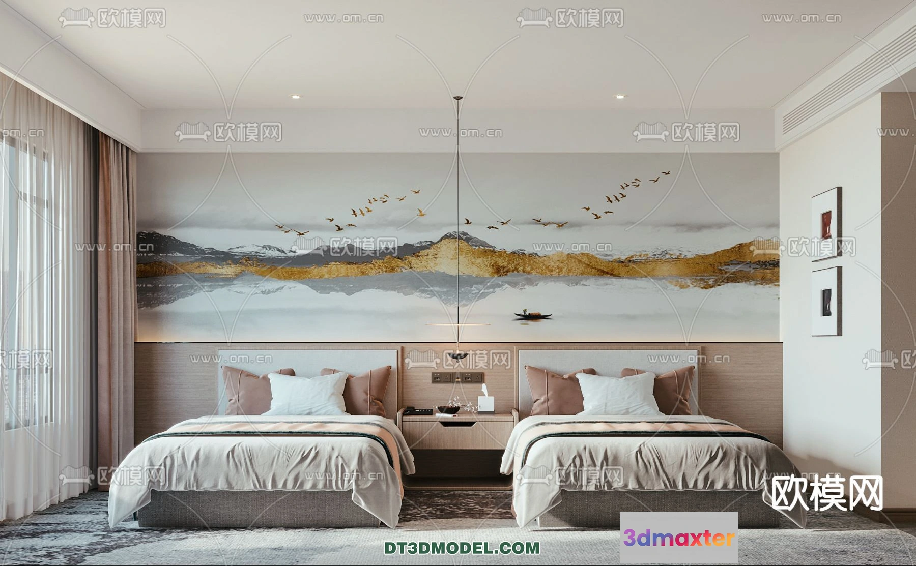 3D Models / 3D Scenes / Interior / Commercial Spaces / Bedroom For Hotel – 3D Scene – Interior Design – 020 3D Max