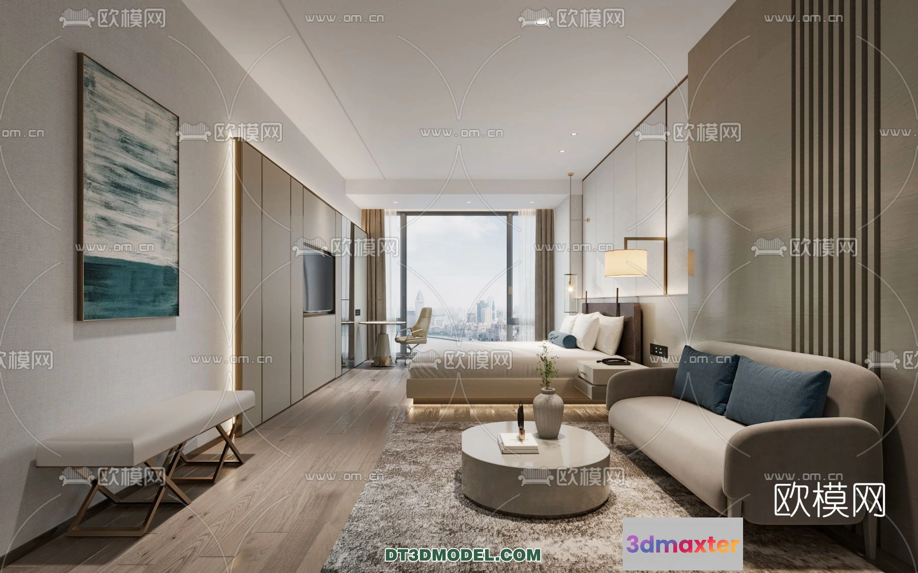 3D Models / 3D Scenes / Interior / Commercial Spaces / Bedroom For Hotel – 3D Scene – Interior Design – 021 3D Max