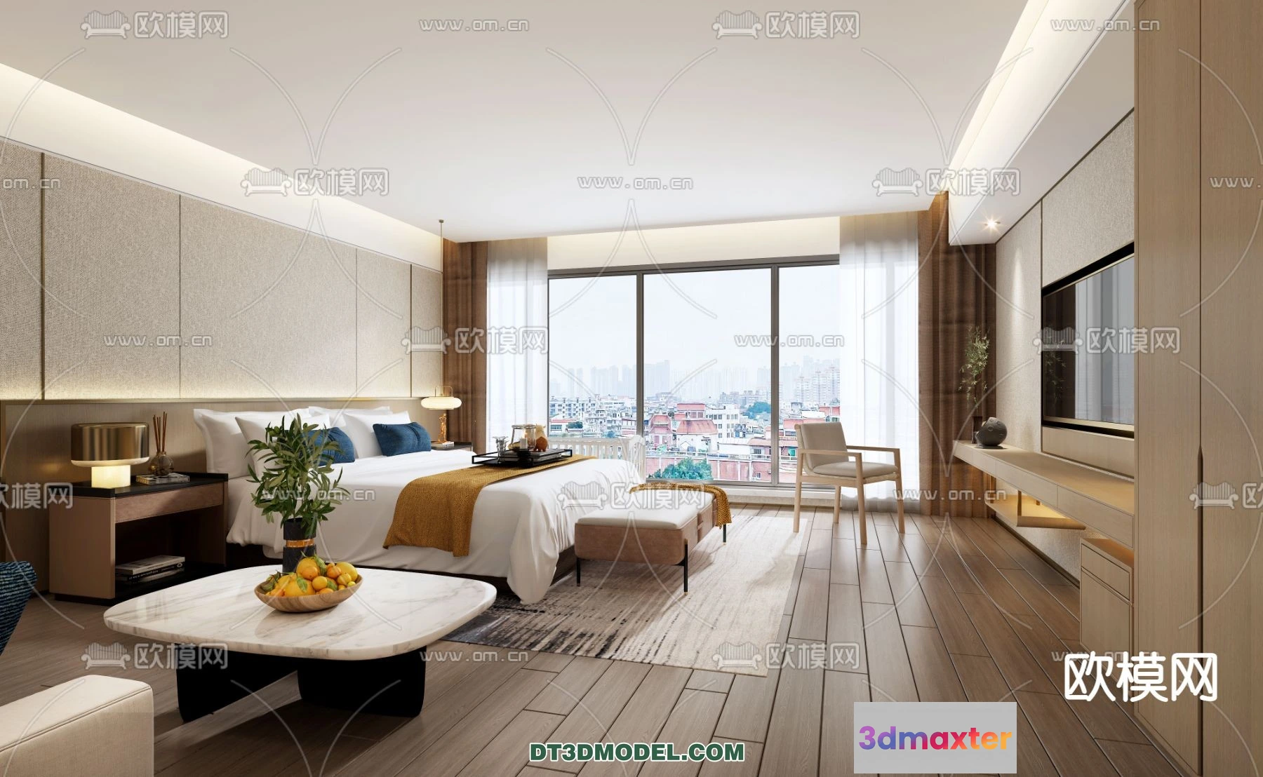 3D Models / 3D Scenes / Interior / Commercial Spaces / Bedroom For Hotel – 3D Scene – Interior Design – 022 3D Max