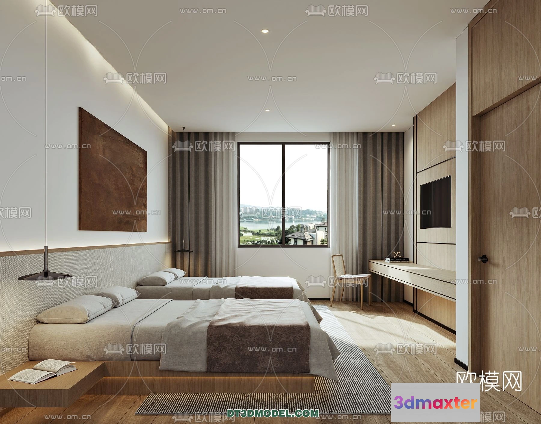 3D Models / 3D Scenes / Interior / Commercial Spaces / Bedroom For Hotel – 3D Scene – Interior Design – 023 3D Max