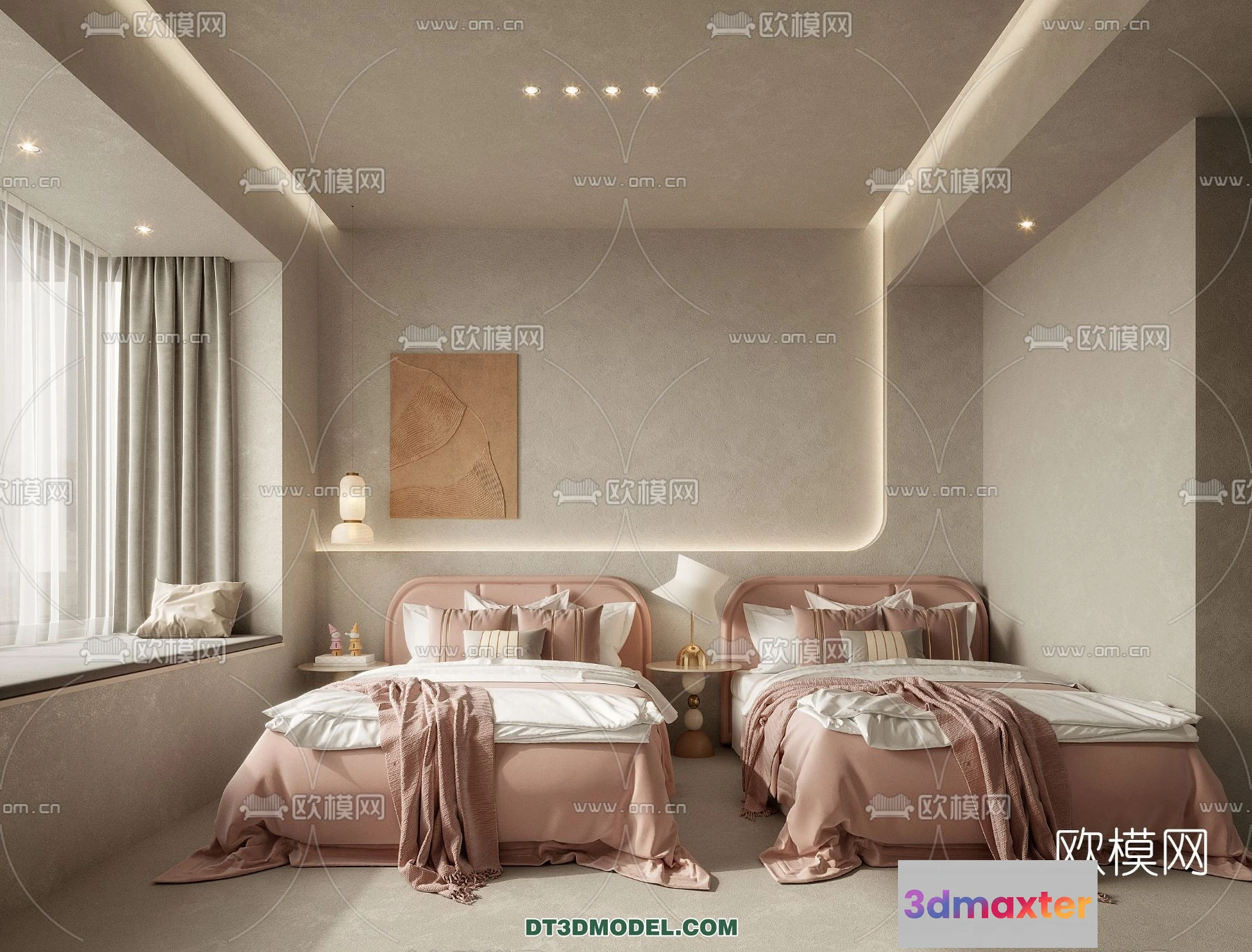3D Models / 3D Scenes / Interior / Commercial Spaces / Bedroom For Hotel – 3D Scene – Interior Design – 030 3D Max