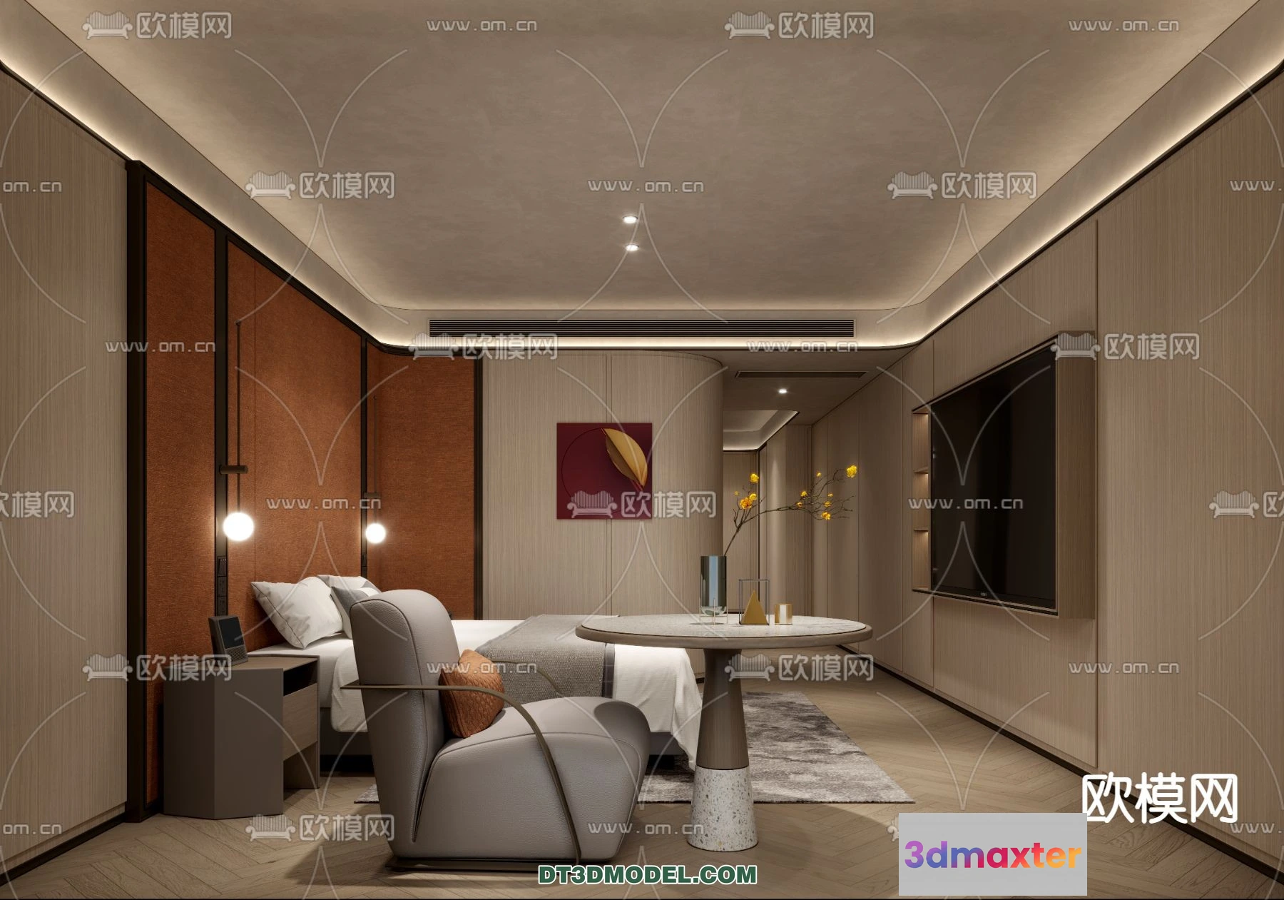 3D Models / 3D Scenes / Interior / Commercial Spaces / Bedroom For Hotel – 3D Scene – Interior Design – 032 3D Max