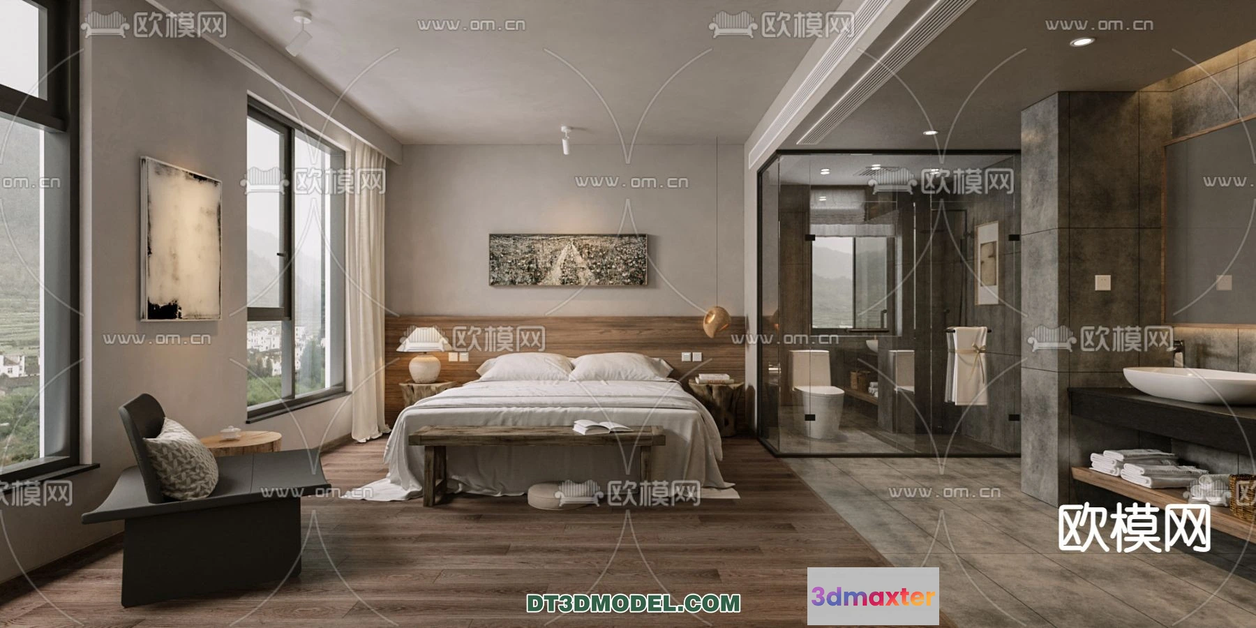 3D Models / 3D Scenes / Interior / Commercial Spaces / Bedroom For Hotel – 3D Scene – Interior Design – 037 3D Max