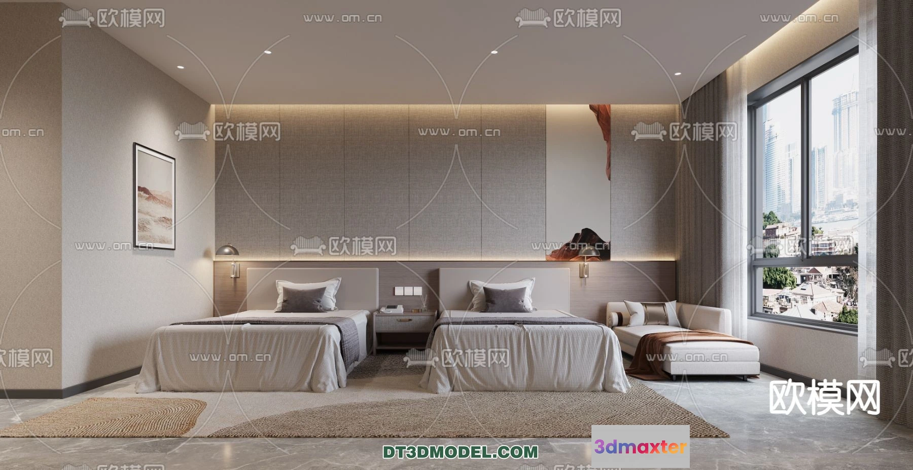 3D Models / 3D Scenes / Interior / Commercial Spaces / Bedroom For Hotel – 3D Scene – Interior Design – 059 3D Max