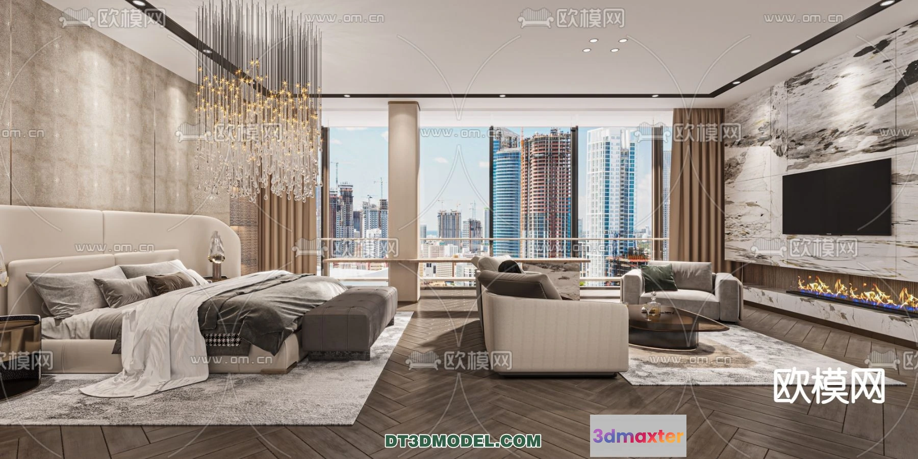 3D Models / 3D Scenes / Interior / Commercial Spaces / Bedroom For Hotel – 3D Scene – Interior Design – 071 3D Max