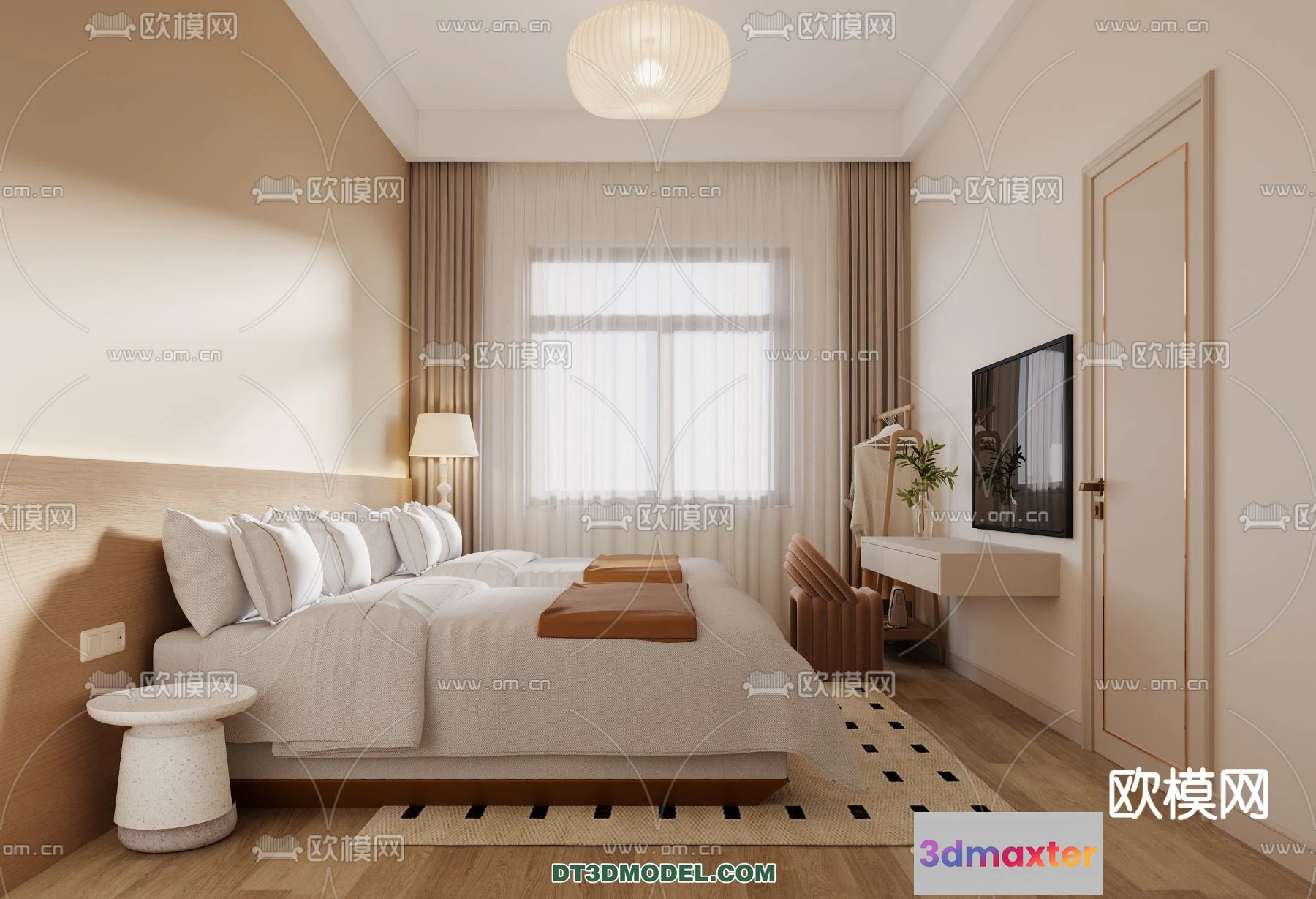 3D Models / 3D Scenes / Interior / Commercial Spaces / Bedroom For Hotel – 3D Scene – Interior Design – 076 3D Max