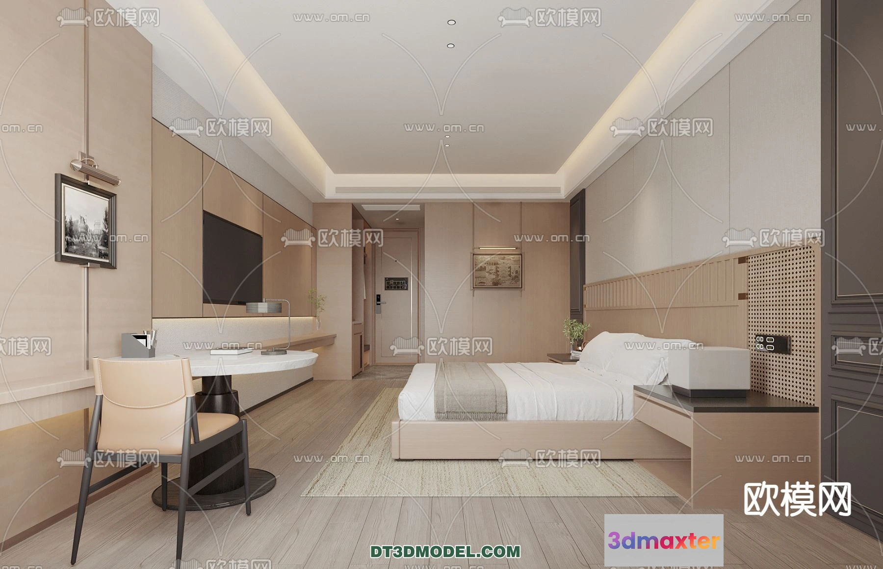 3D Models / 3D Scenes / Interior / Commercial Spaces / Bedroom For Hotel – 3D Scene – Interior Design – 079 3D Max