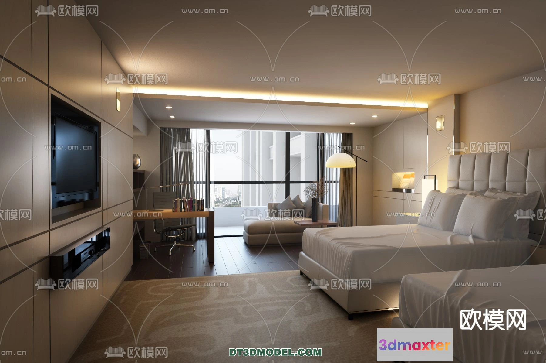 3D Models / 3D Scenes / Interior / Commercial Spaces / Bedroom For Hotel – 3D Scene – Interior Design – 085 3D Max