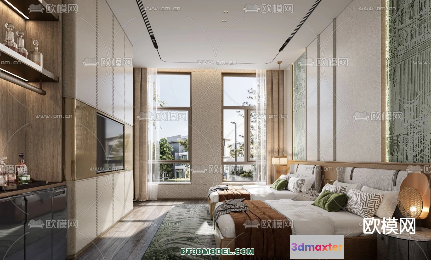 3D Models / 3D Scenes / Interior / Commercial Spaces / Bedroom For Hotel – 3D Scene – Interior Design – 086 3D Max
