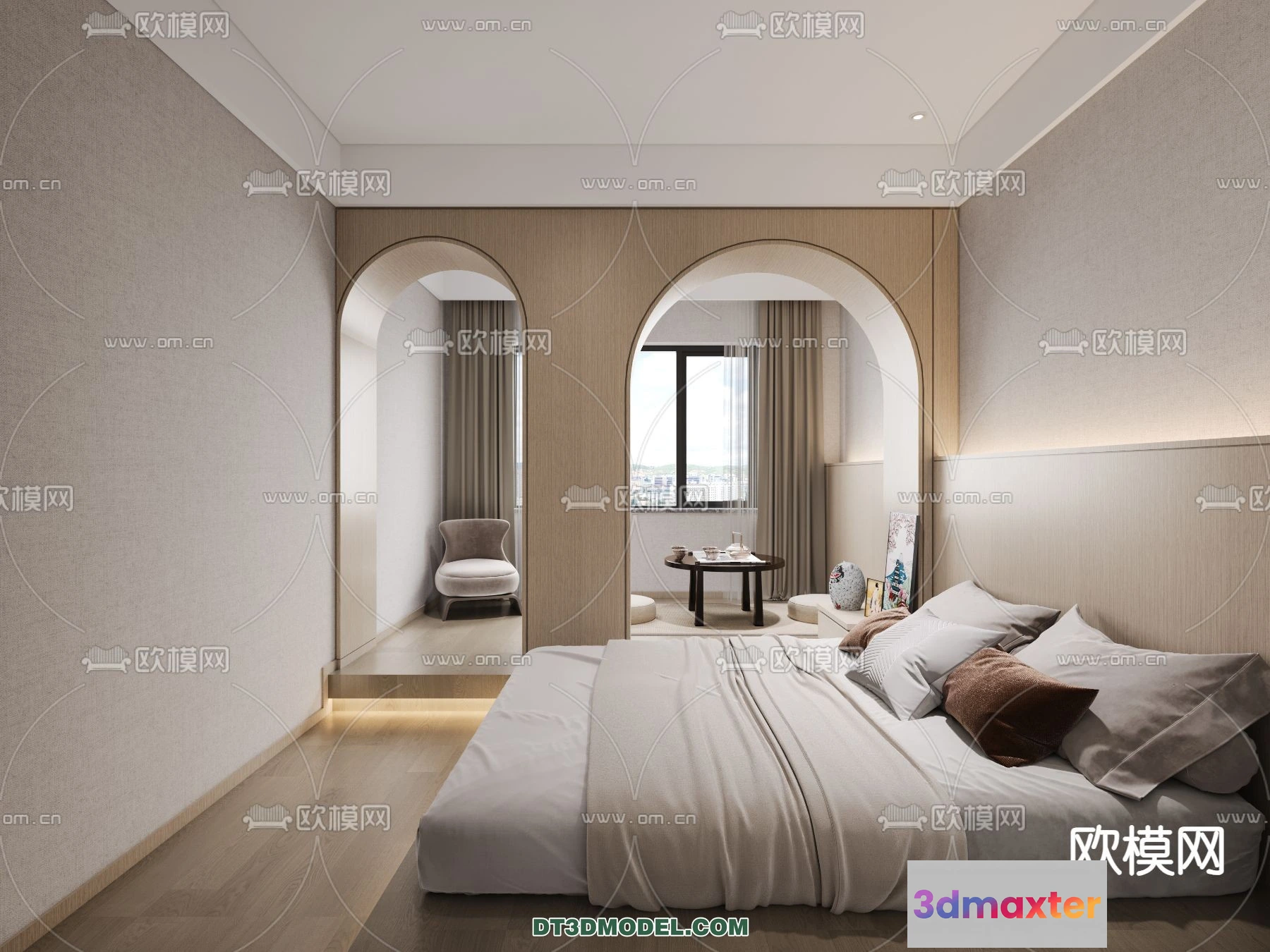 3D Models / 3D Scenes / Interior / Commercial Spaces / Bedroom For Hotel – 3D Scene – Interior Design – 087 3D Max