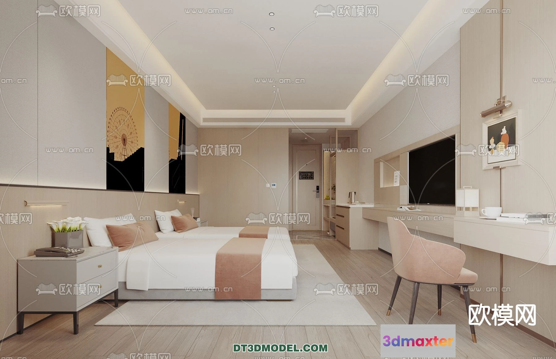 3D Models / 3D Scenes / Interior / Commercial Spaces / Bedroom For Hotel – 3D Scene – Interior Design – 092 3D Max