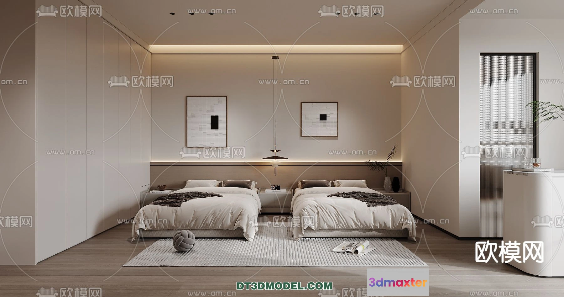 3D Models / 3D Scenes / Interior / Commercial Spaces / Bedroom For Hotel – 3D Scene – Interior Design – 100 3D Max