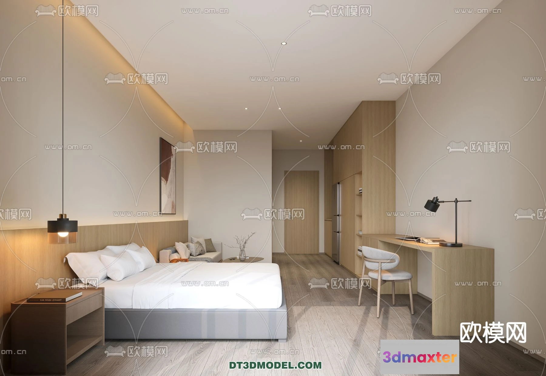 3D Models / 3D Scenes / Interior / Commercial Spaces / Bedroom For Hotel – 3D Scene – Interior Design – 106 3D Max