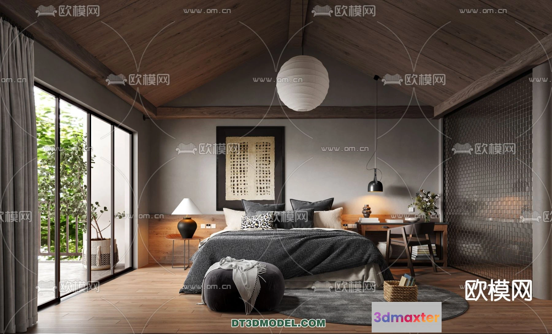 3D Models / 3D Scenes / Interior / Commercial Spaces / Bedroom For Hotel – 3D Scene – Interior Design – 107 3D Max
