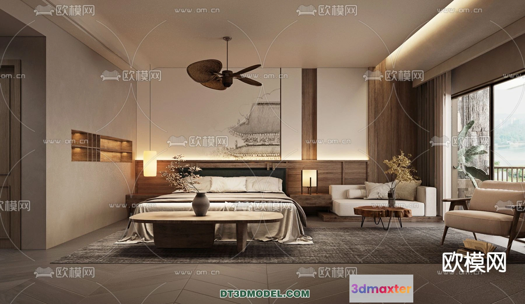 3D Models / 3D Scenes / Interior / Commercial Spaces / Bedroom For Hotel – 3D Scene – Interior Design – 112 3D Max