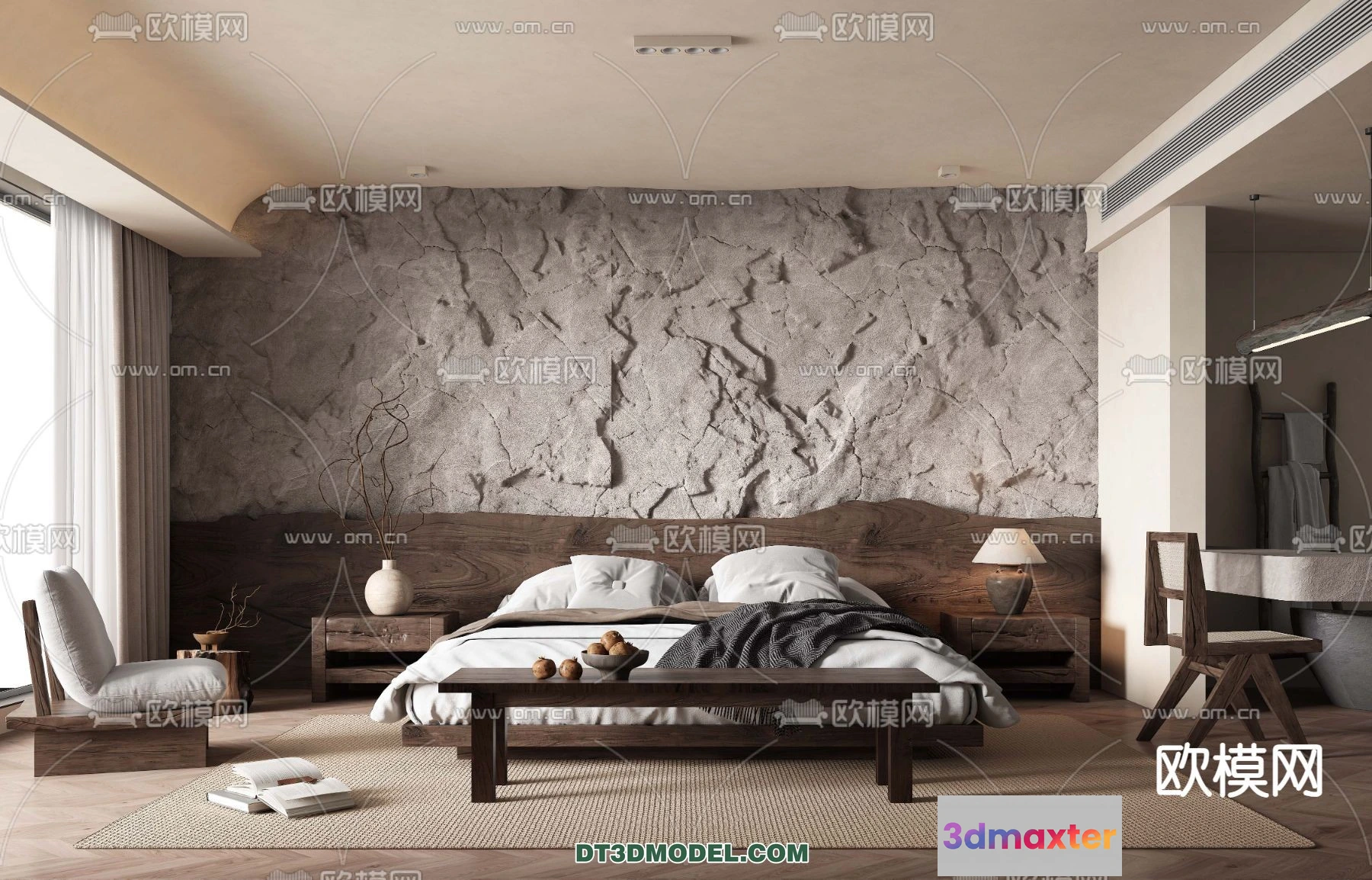 3D Models / 3D Scenes / Interior / Commercial Spaces / Bedroom For Hotel – 3D Scene – Interior Design – 113 3D Max