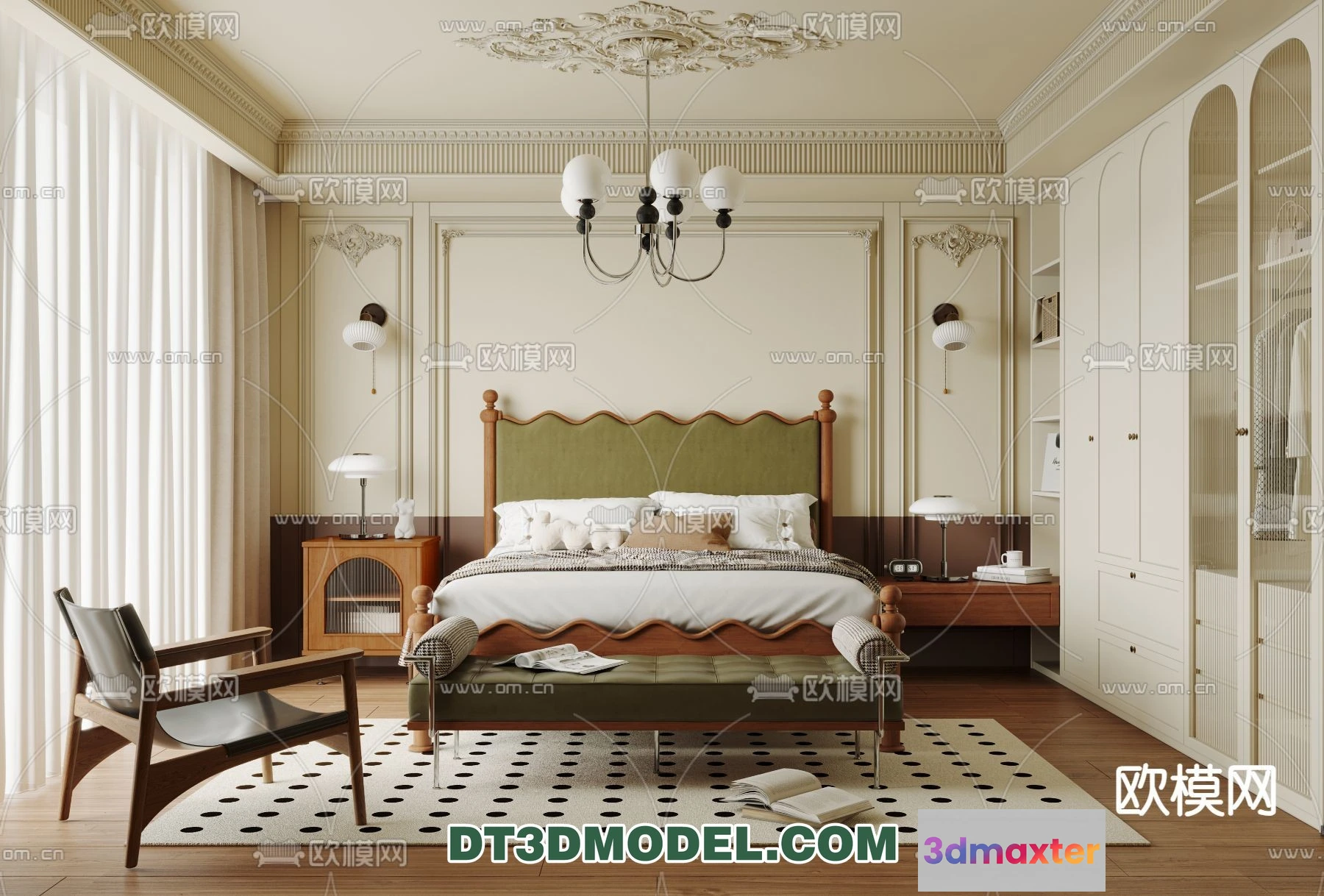 3D Models / 3D Scenes / Interior / Bedroom / Bedroom – France Style – Interior 3D Scene – 013 3D Max