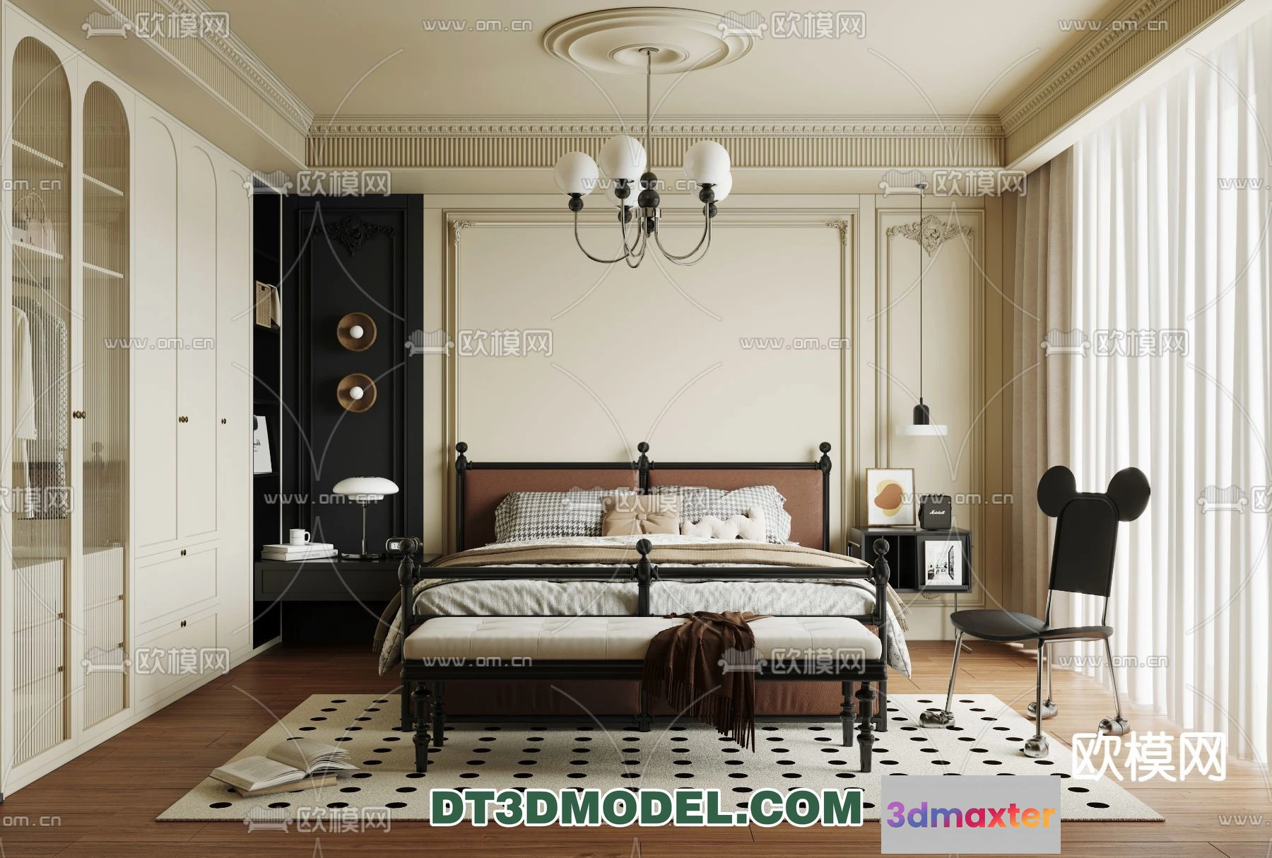 3D Models / 3D Scenes / Interior / Bedroom / Bedroom – France Style – Interior 3D Scene – 021 3D Max