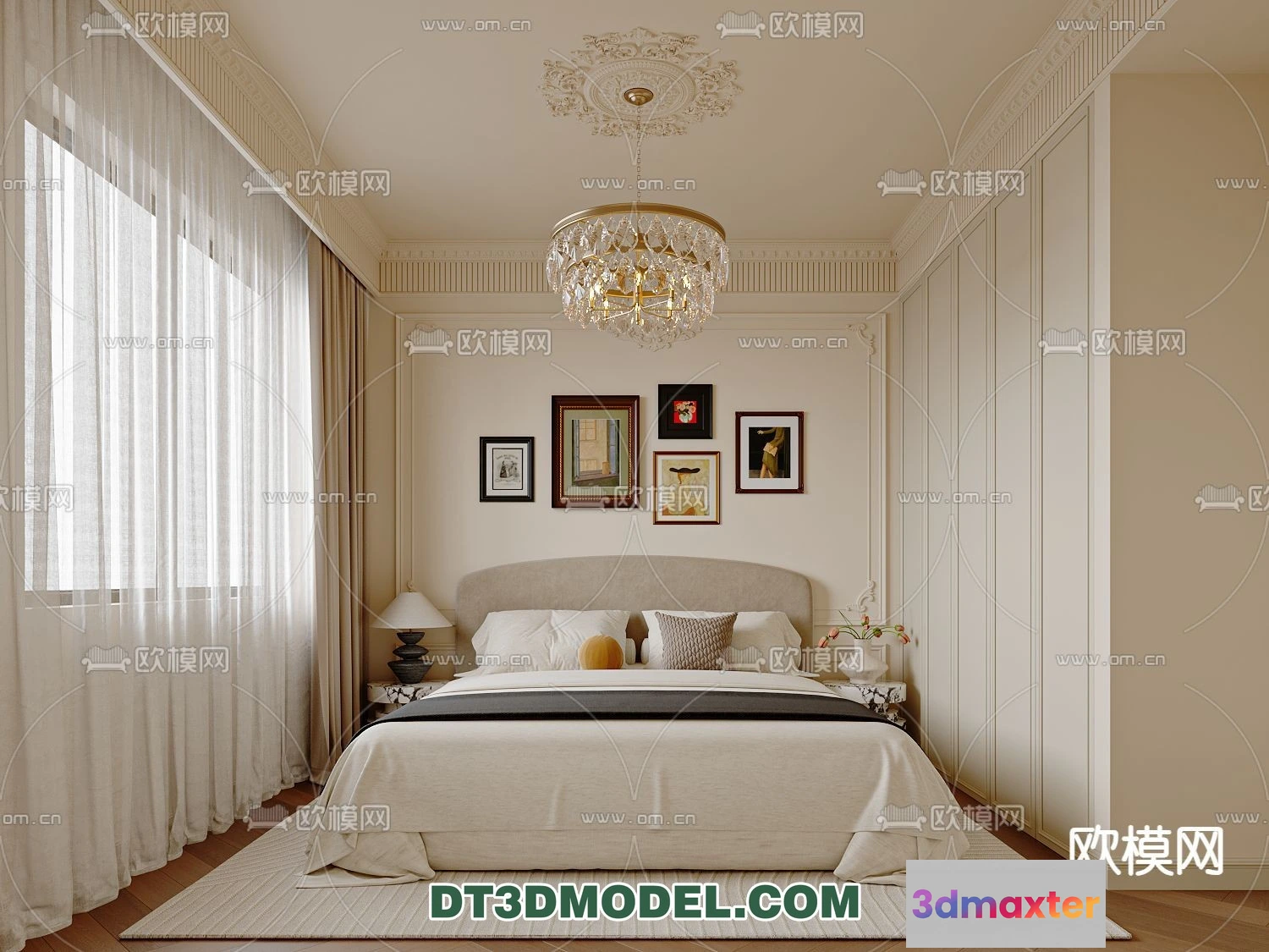 3D Models / 3D Scenes / Interior / Bedroom / Bedroom – France Style – Interior 3D Scene – 031 3D Max