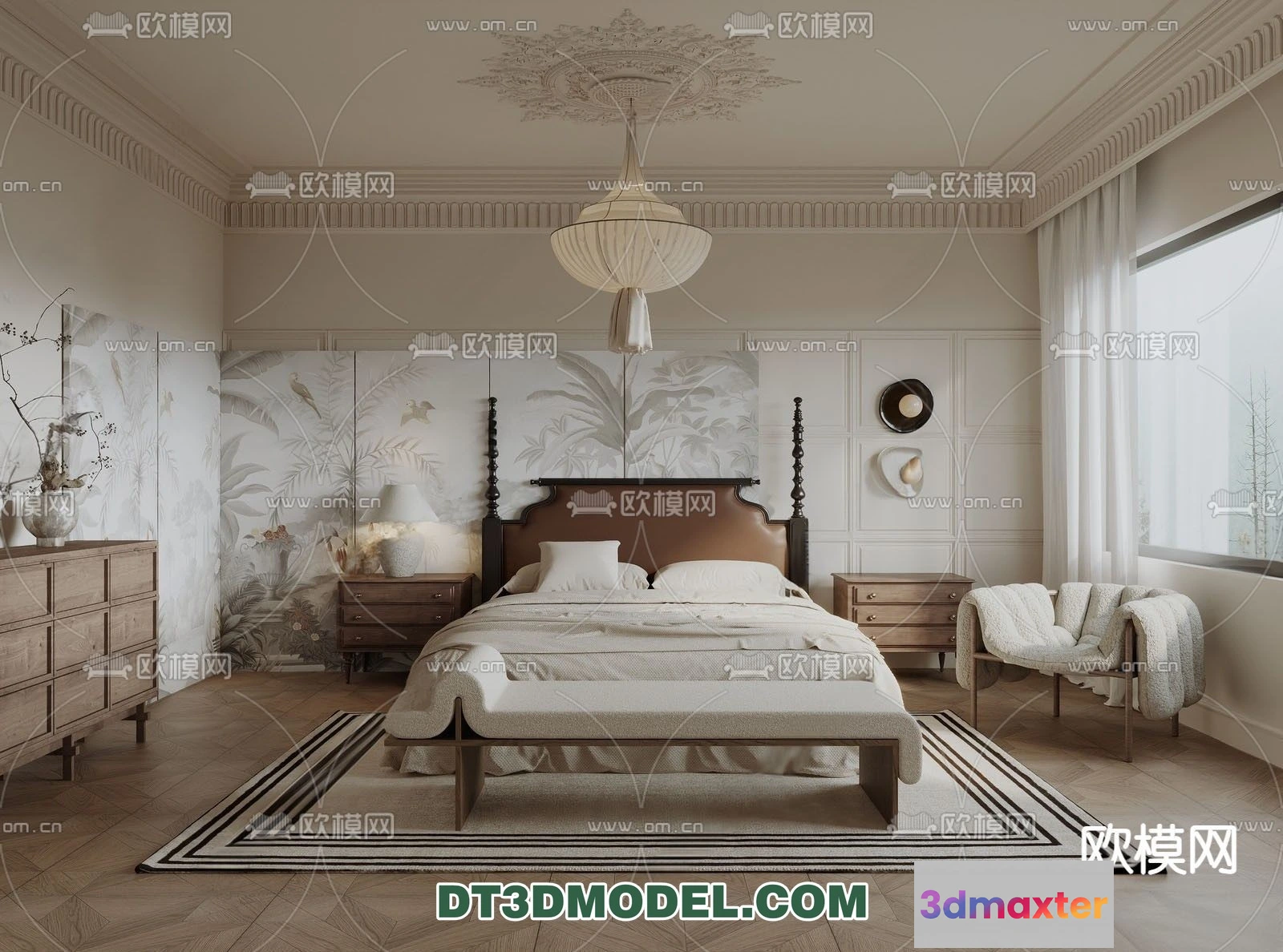 3D Models / 3D Scenes / Interior / Bedroom / Bedroom – France Style – Interior 3D Scene – 046 3D Max