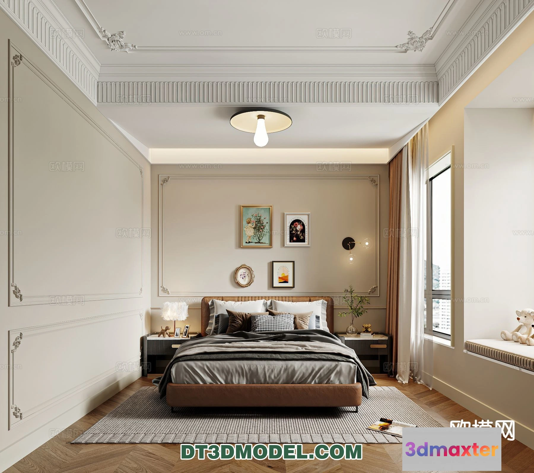 3D Models / 3D Scenes / Interior / Bedroom / Bedroom – France Style – Interior 3D Scene – 076 3D Max