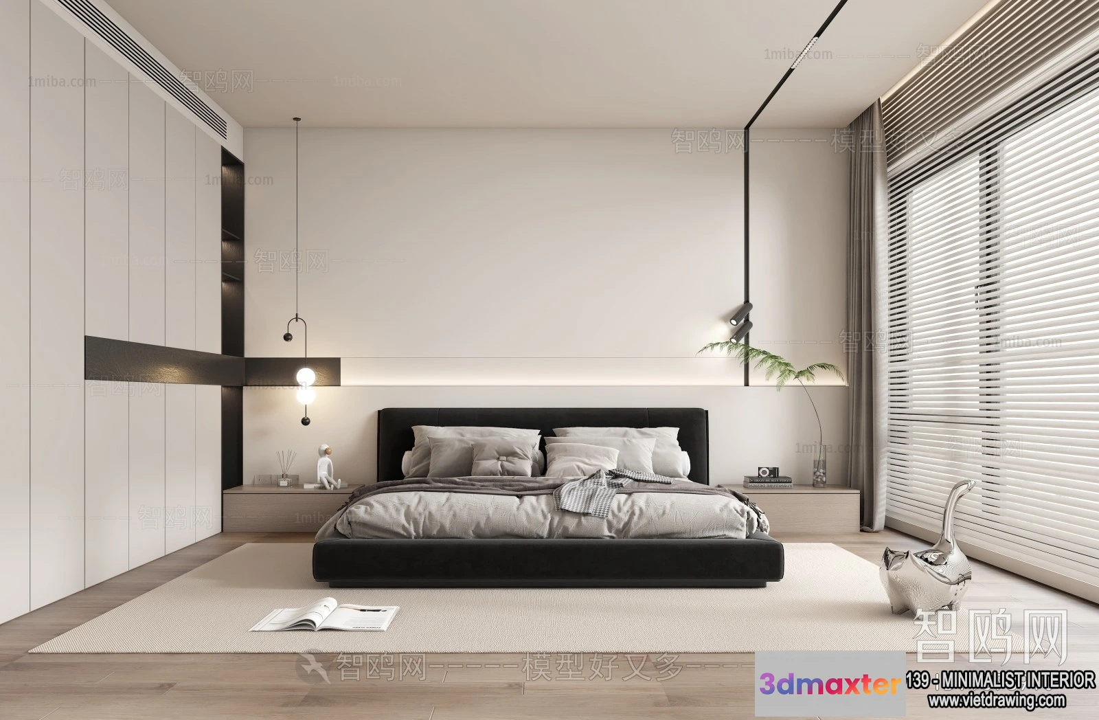 - Name: Bedroom – Minimalist Style – 3D Interior Scene – 005