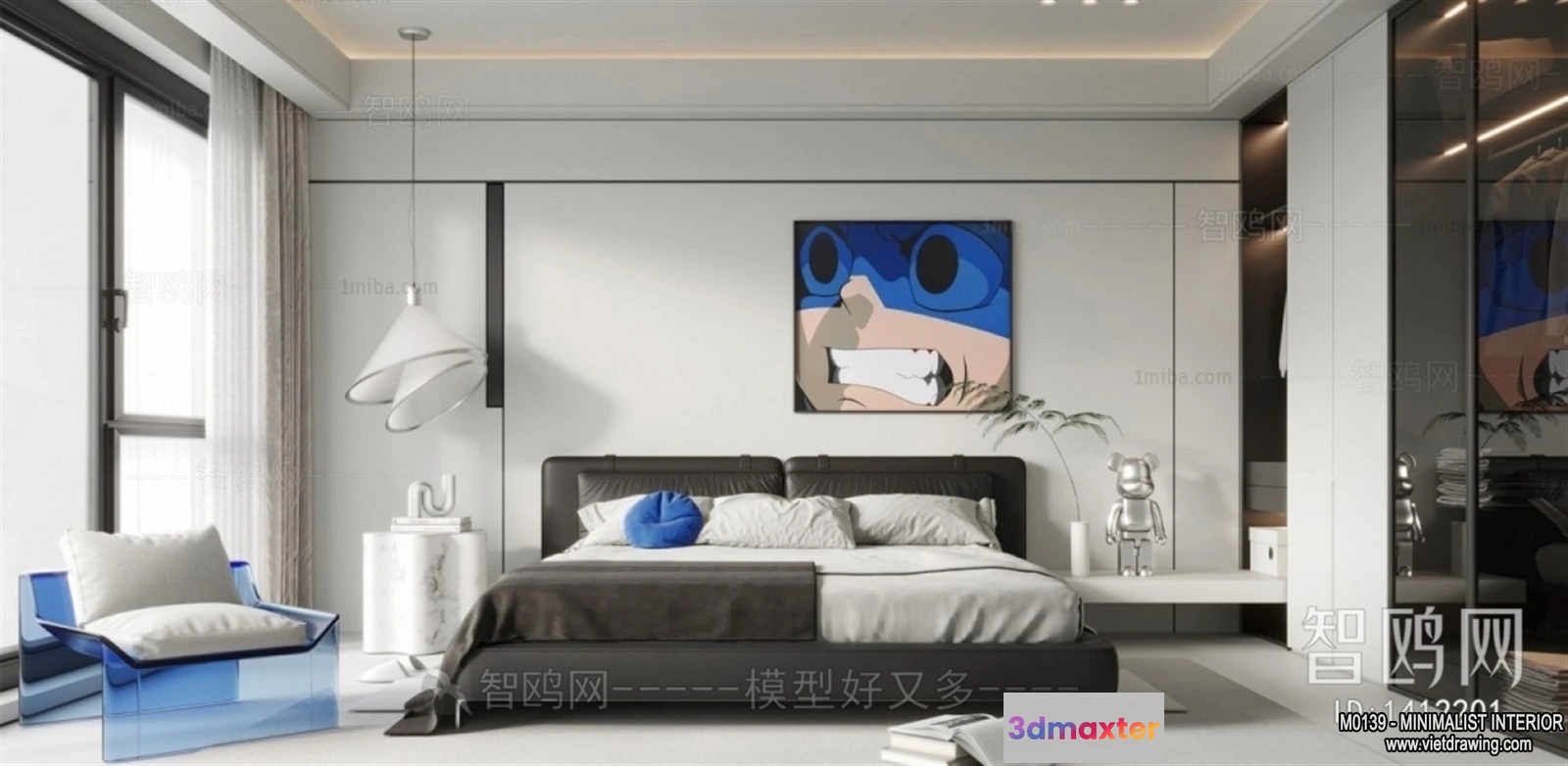 3D Models / 3D Scenes / Interior / Bedroom / Bedroom – Minimalist Style – 3D Interior Scene – 007 3D Max