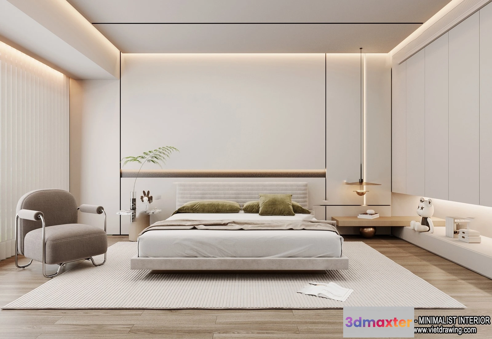 - Name: Bedroom – Minimalist Style – 3D Interior Scene – 022