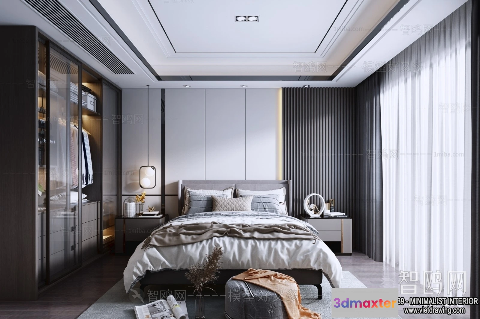3D Models / 3D Scenes / Interior / Bedroom / Bedroom – Minimalist Style – 3D Interior Scene – 046 3D Max