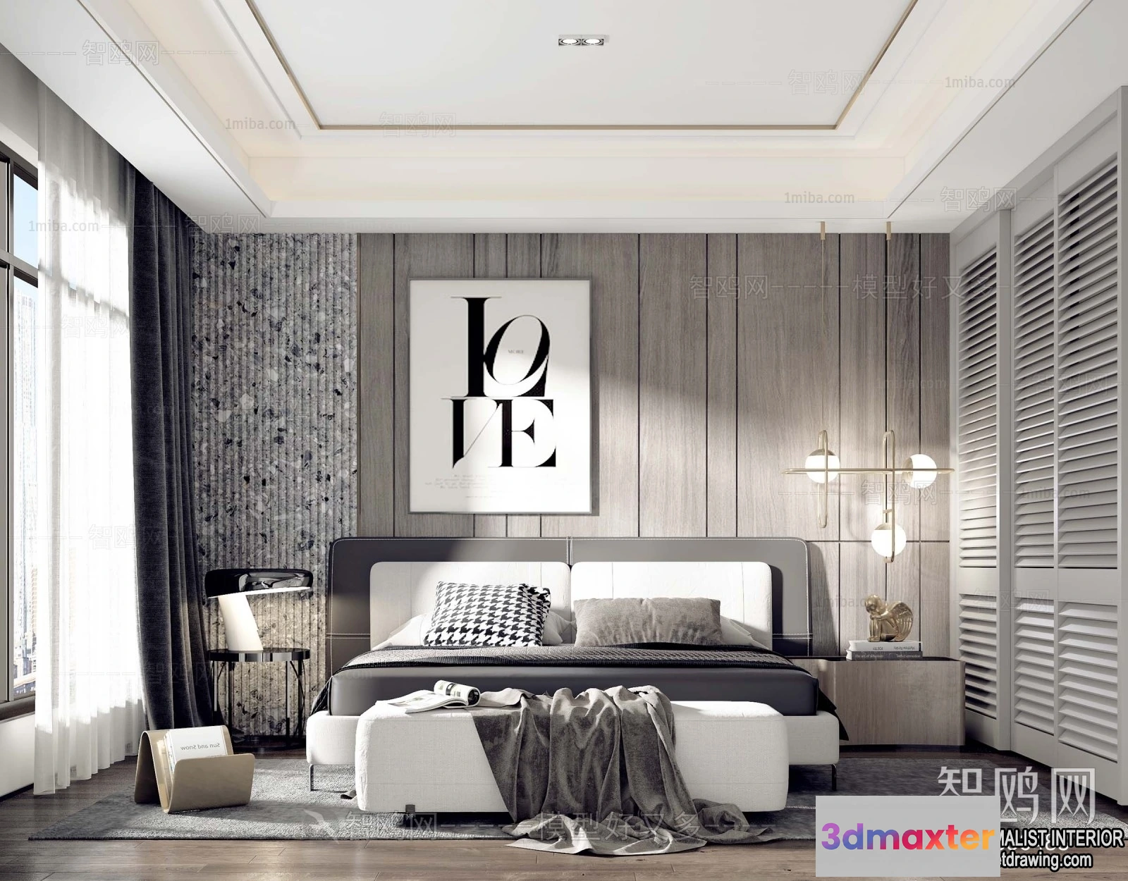 3D Models / 3D Scenes / Interior / Bedroom / Bedroom – Minimalist Style – 3D Interior Scene – 056 3D Max