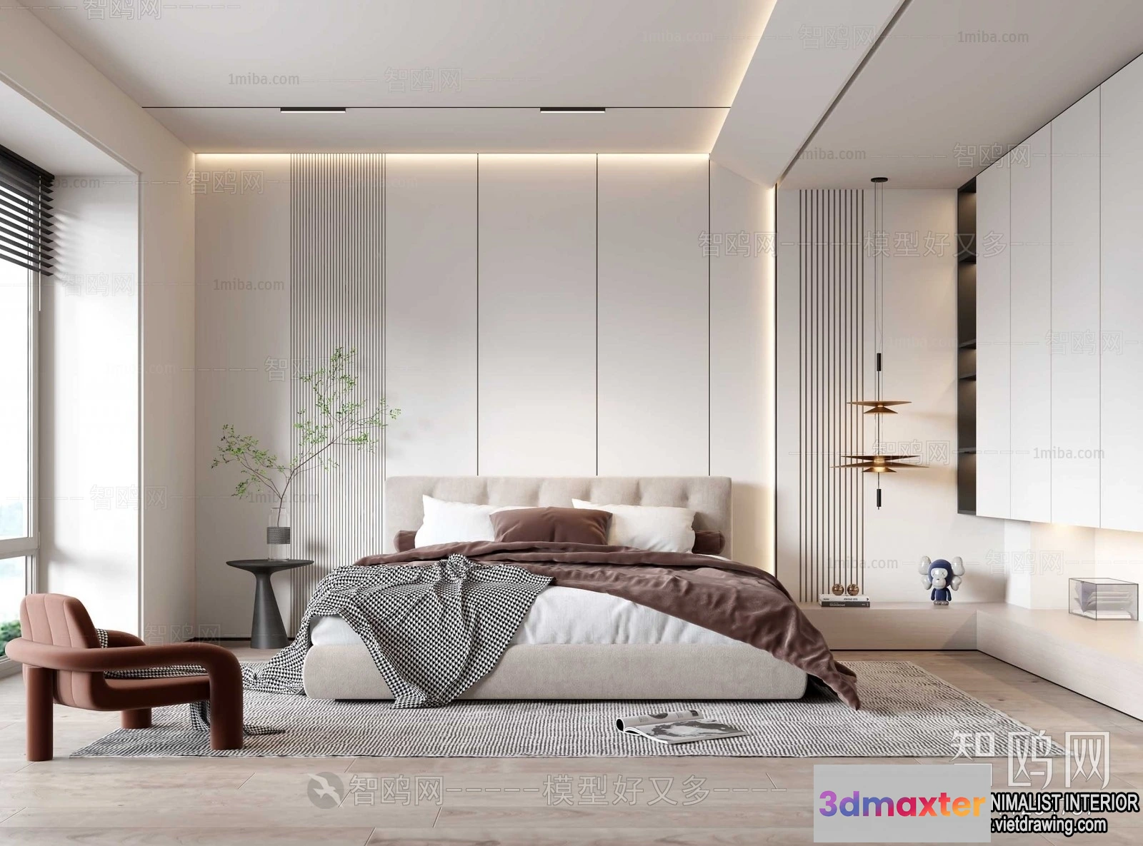 3D Models / 3D Scenes / Interior / Bedroom / Bedroom – Minimalist Style – 3D Interior Scene – 078 3D Max