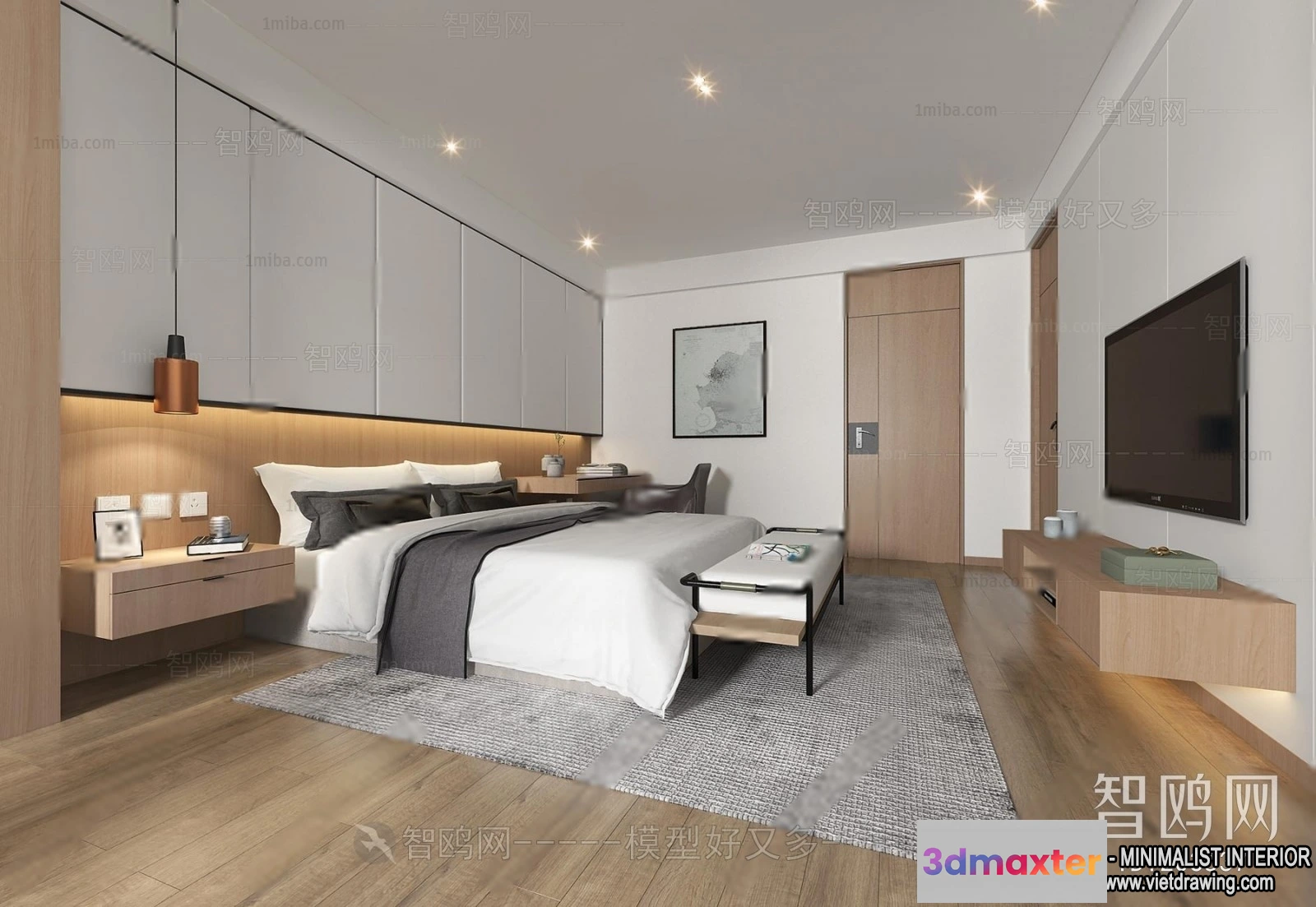 - Name: Bedroom – Minimalist Style – 3D Interior Scene – 100