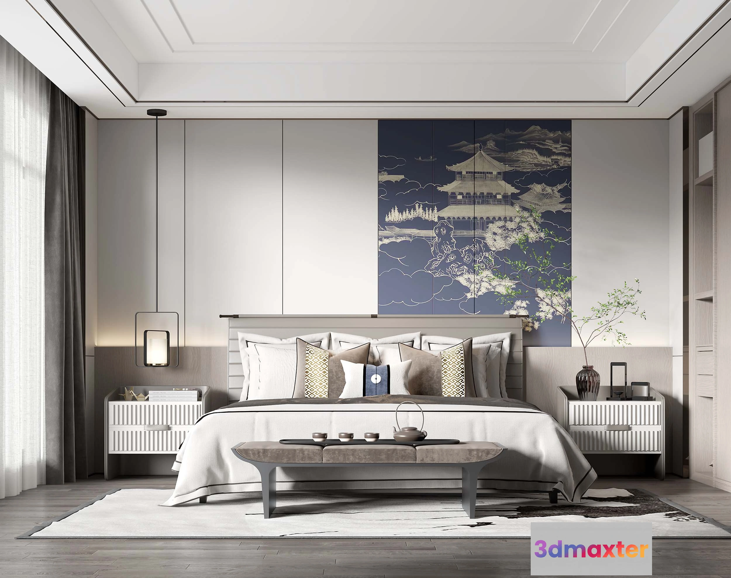3D Models / 3D Scenes / Interior / Bedroom / BEDROOM – MODERN STYLE – 3D SCENE – 287