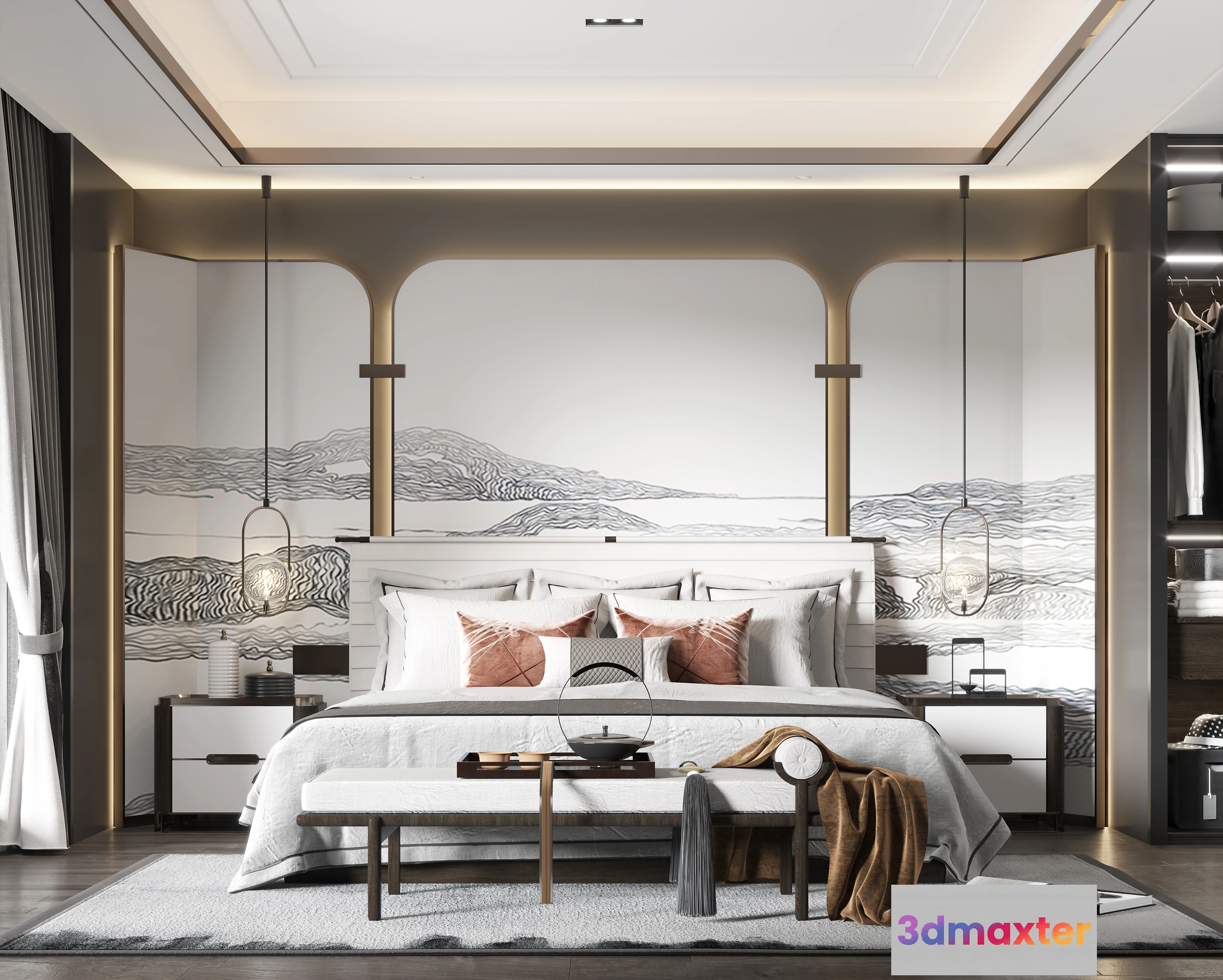 3D Models / 3D Scenes / Interior / Bedroom / BEDROOM – MODERN STYLE – 3D SCENE – 290