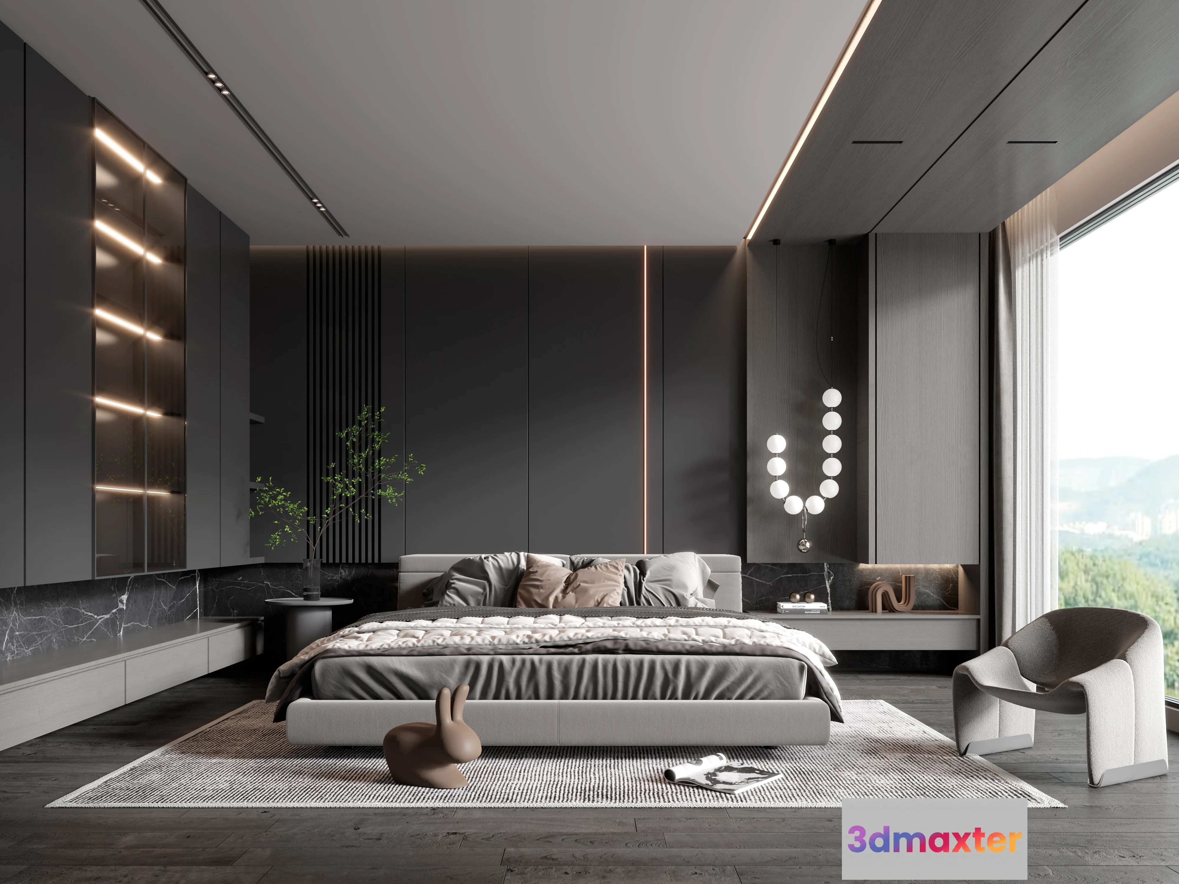 3D Models / 3D Scenes / Interior / Bedroom / BEDROOM – MODERN STYLE – 3D SCENE – 343
