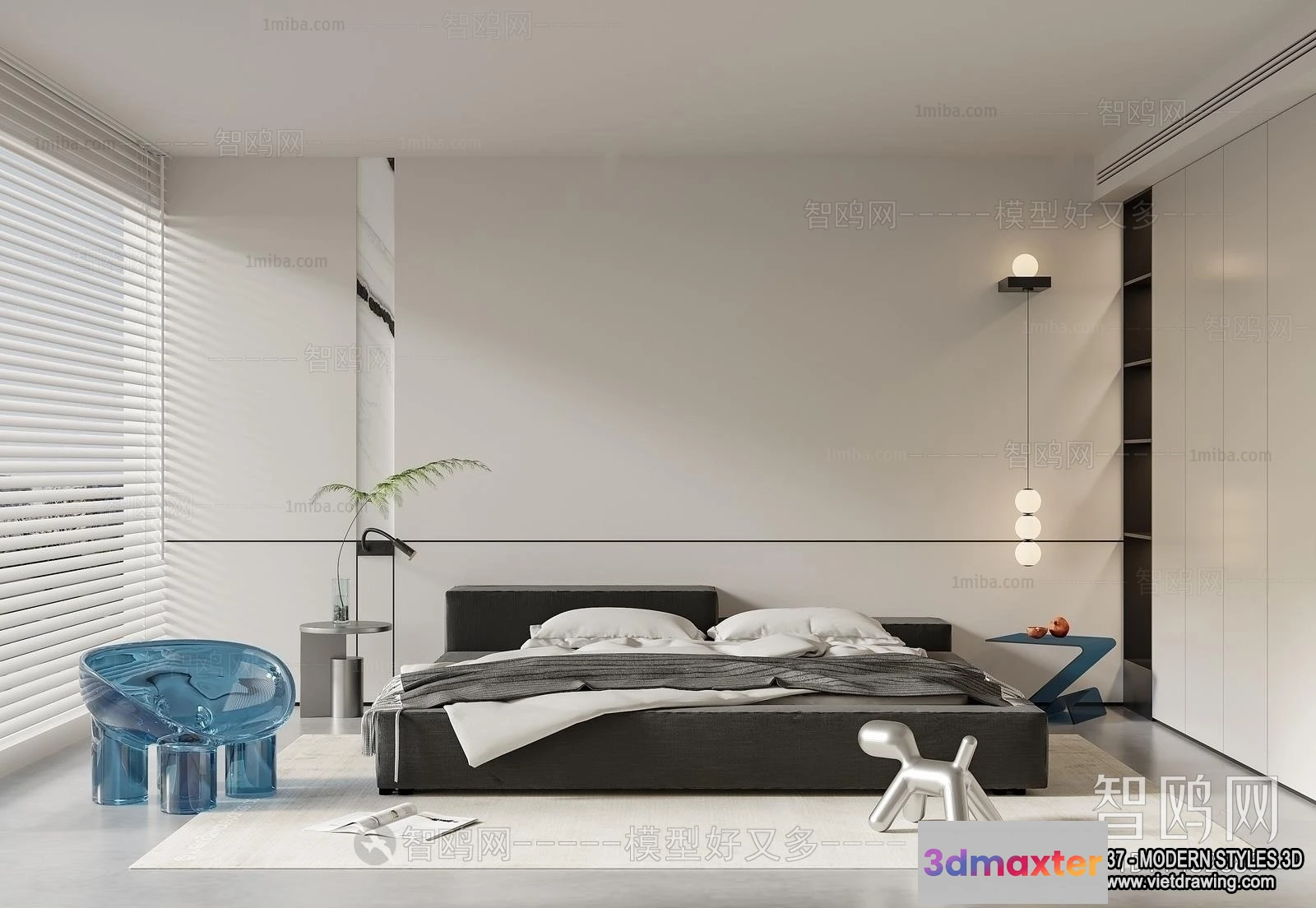 3D Models / 3D Scenes / Interior / Bedroom / Bedroom – Modern Style Interior 3D Scenes – 059 3D Max