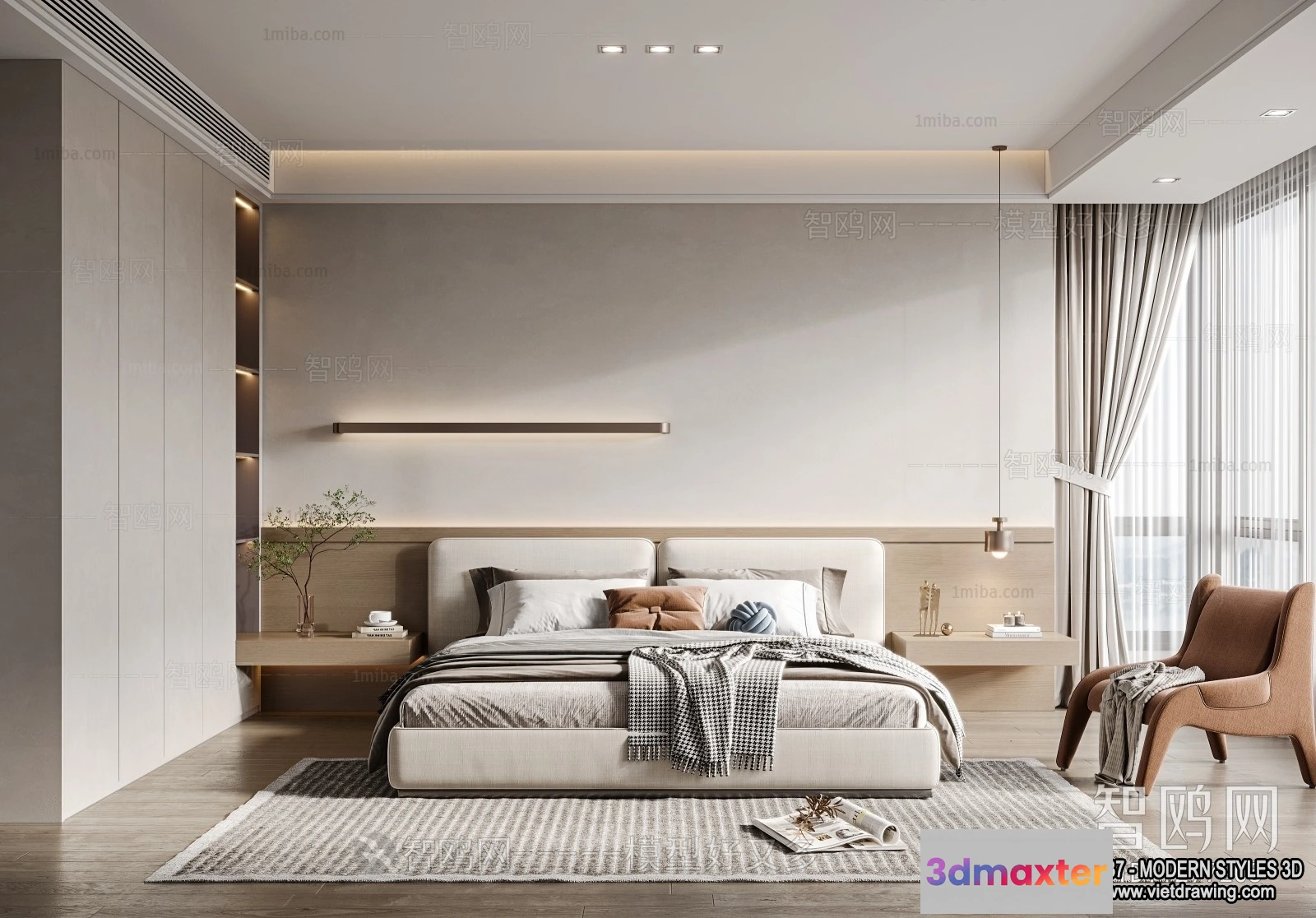 3D Models / 3D Scenes / Interior / Bedroom / Bedroom – Modern Style Interior 3D Scenes – 103 3D Max
