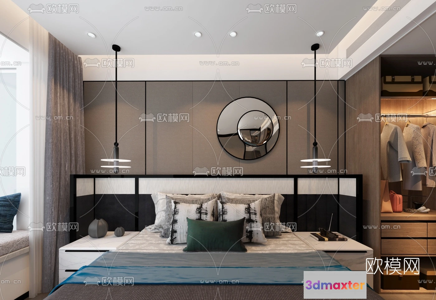 3D Models / 3D Scenes / Interior / Bedroom / BEDROOM – MODERN STYLE – VRAY / CORONA – 3D MODEL – 2045