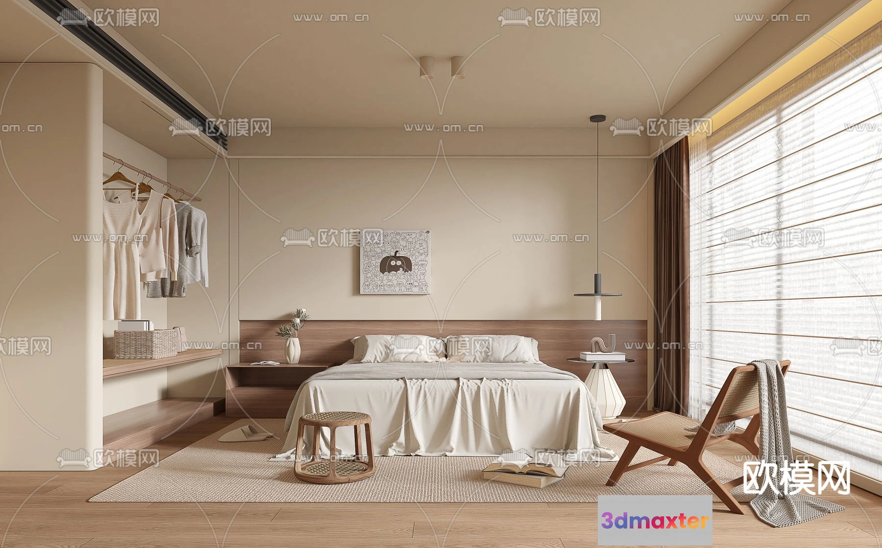 - Name: BEDROOM – MODERN STYLE – VRAY / CORONA – 3D MODEL – 2059