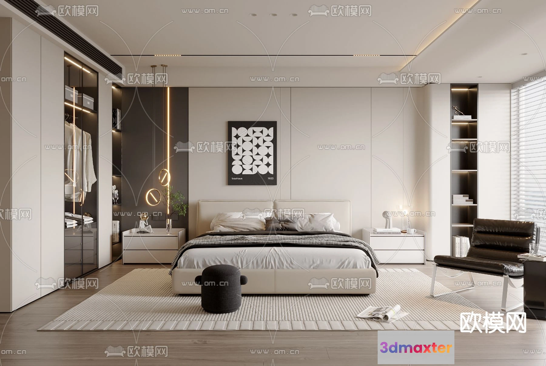 - Name: BEDROOM – MODERN STYLE – VRAY / CORONA – 3D MODEL – 2061