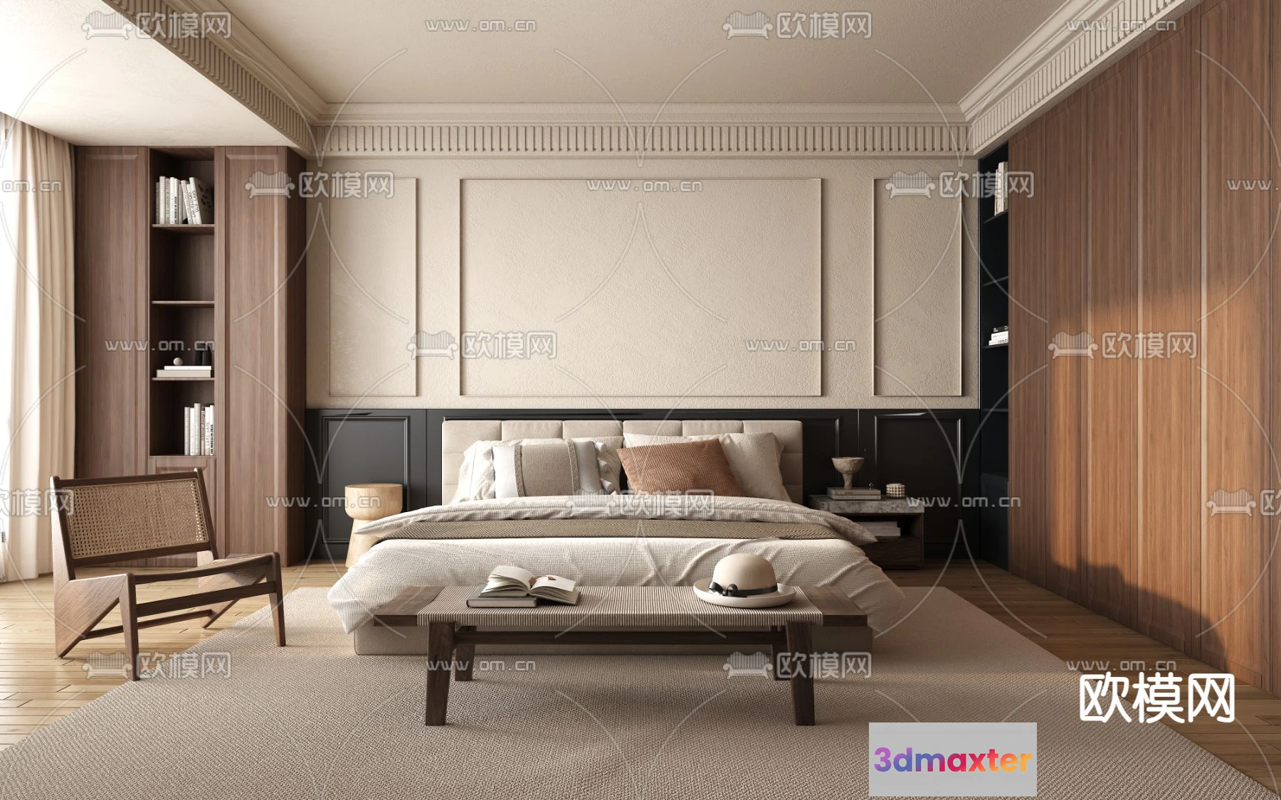3D Models / 3D Scenes / Interior / Bedroom / BEDROOM – MODERN STYLE – VRAY / CORONA – 3D MODEL – 2105
