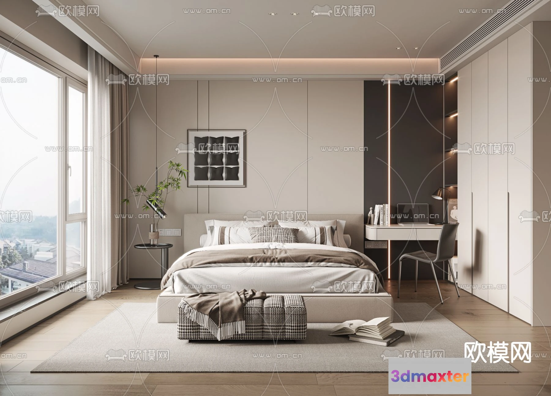 - Name: BEDROOM – MODERN STYLE – VRAY / CORONA – 3D MODEL – 2109