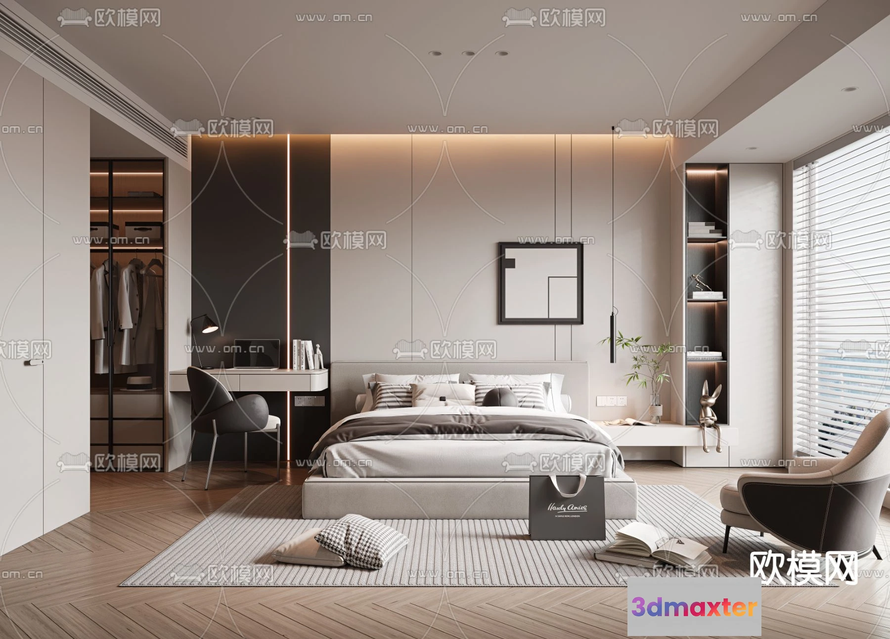 3D Models / 3D Scenes / Interior / Bedroom / BEDROOM – MODERN STYLE – VRAY / CORONA – 3D MODEL – 2131