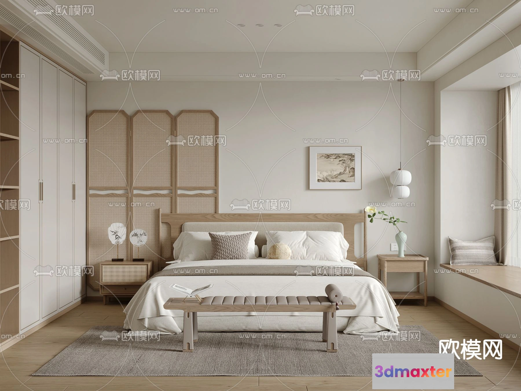 3D Models / 3D Scenes / Interior / Bedroom / BEDROOM – MODERN STYLE – VRAY / CORONA – 3D MODEL – 2140