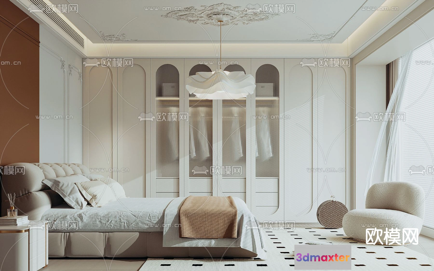 - Name: BEDROOM – MODERN STYLE – VRAY / CORONA – 3D MODEL – 2143