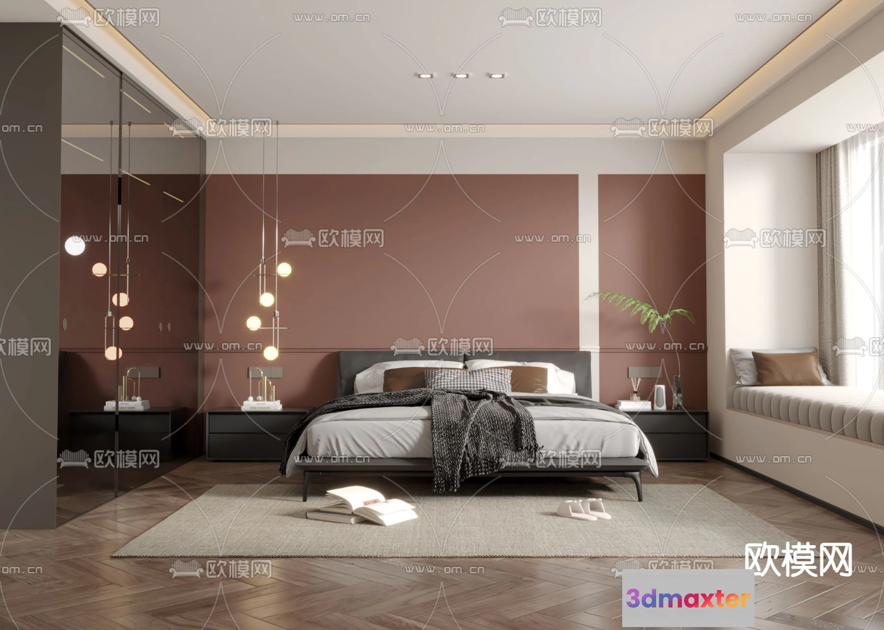 3D Models / 3D Scenes / Interior / Bedroom / BEDROOM – MODERN STYLE – VRAY / CORONA – 3D MODEL – 2147
