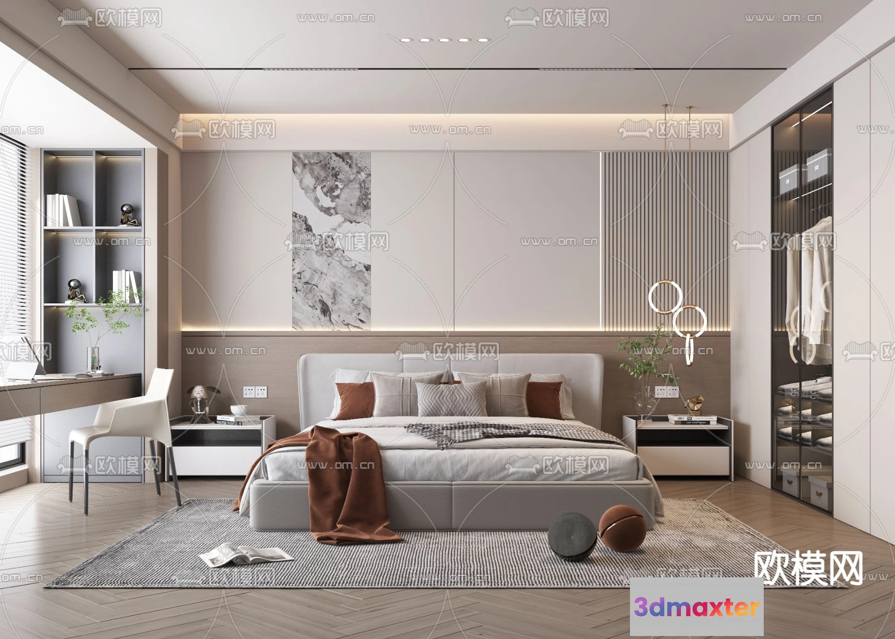 3D Models / 3D Scenes / Interior / Bedroom / BEDROOM – MODERN STYLE – VRAY / CORONA – 3D MODEL – 2161